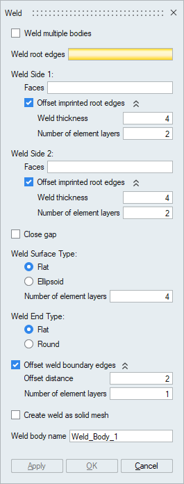 If this option is turned ON, it will create solid weld with TET elements. Or else it will create shell weld with TRI elements.