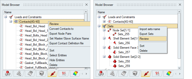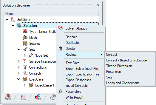 The Review tools gives us a tabular representation of the corresponding tools. This helps us to quickly review and edit the parameters or magnitude of loads and boundary conditions.These review tools are available in the right click options of the corresponding load in LBC / Solution browser.
