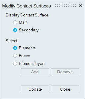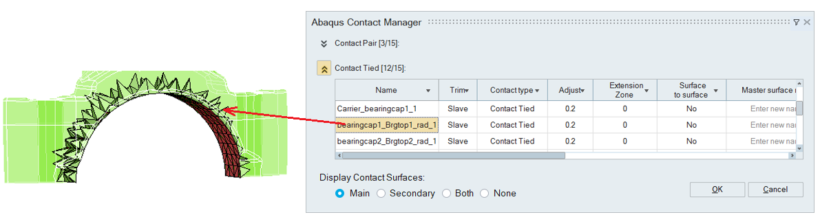 Click on "Modify Contact Surfaces" displays the main/secondary faces of the selected contact.
