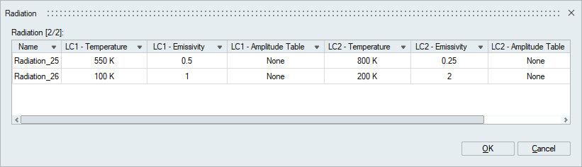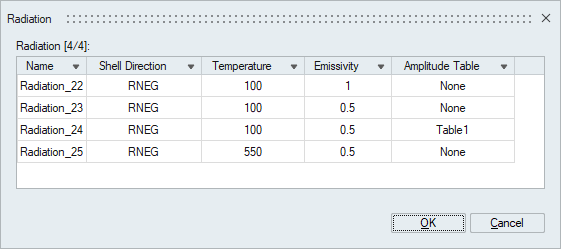 If loadcases are present, this tool will list the radiation parameters with respect to each loadcase. This behavior is currently supported for Abaqus solver only.