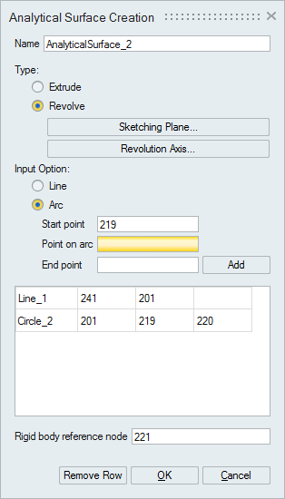 • Revolve: Used to define analytical surface profile for revolve type based on the sketch and revolution axis.