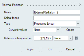 - Piecewise Linear - To specify piecewise linear values for Radiation heat flux on a surface using a table. This curve can be used to capture change in Radiation heat flux across the surface.