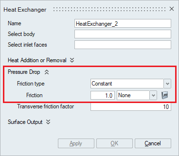 where ƒ is the friction factor; ρ is the density; u is the axial velocity at the minimum cross-section area. The friction factor should be specified for the pressure-drop to be calculated.