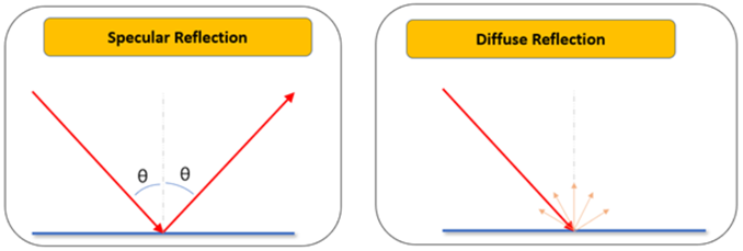- Specular reflectivity (ρs): The angle of reflection is equal to the angle of incidence.
