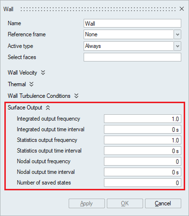 Surface Output specifies the output parameters for a boundary face.