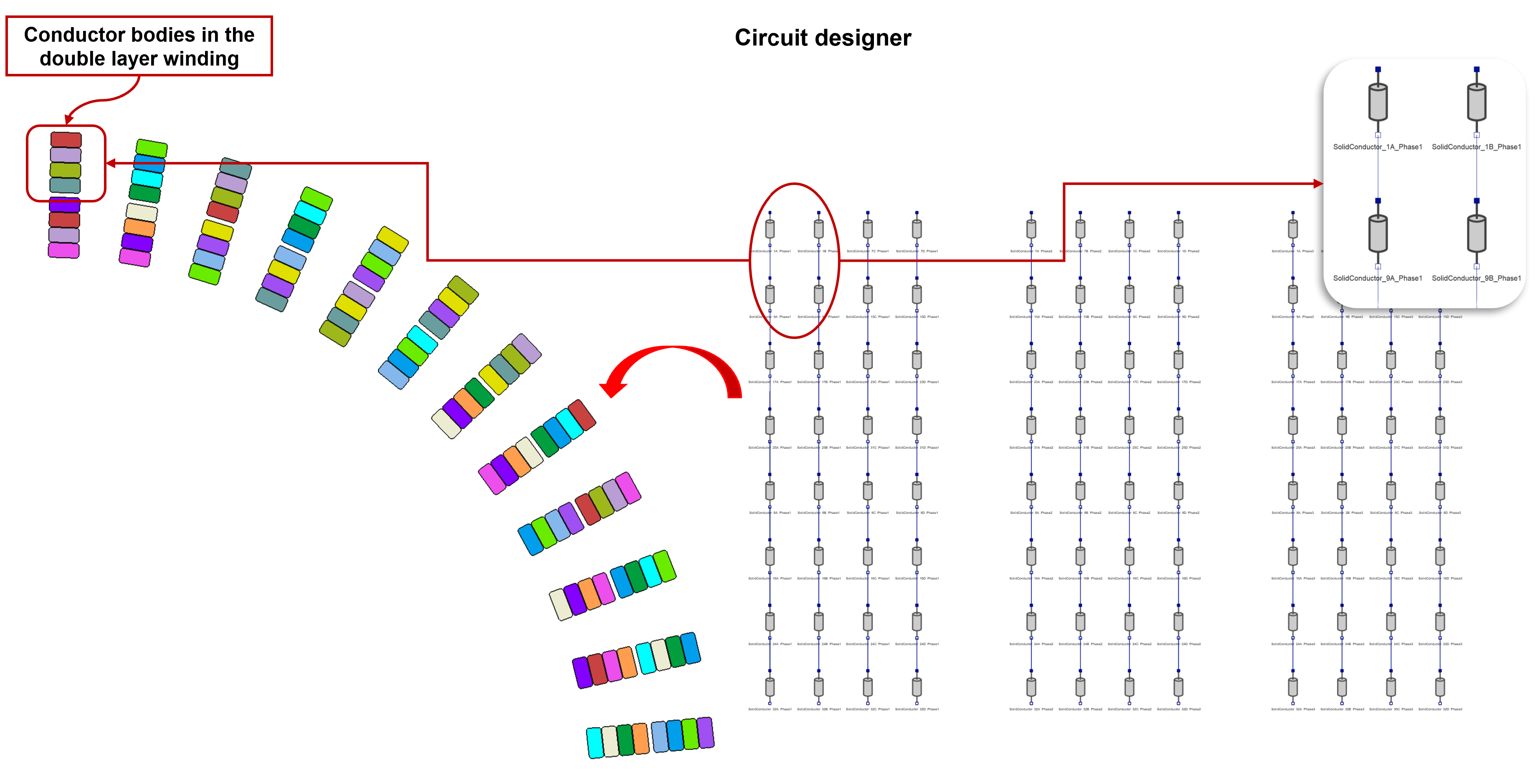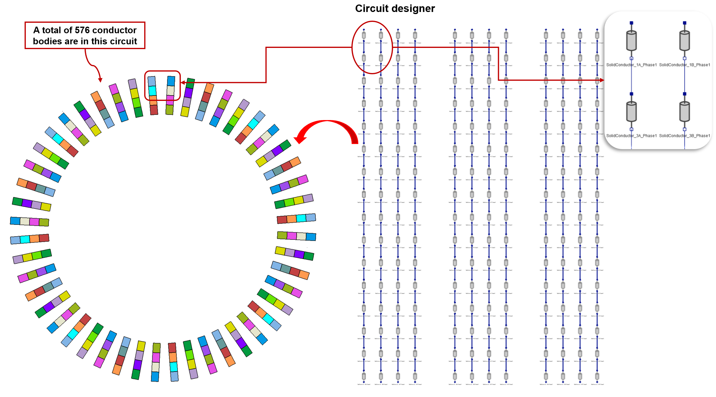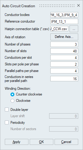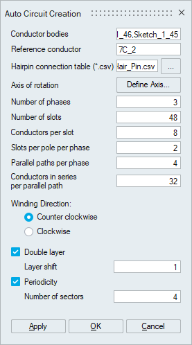 This tool facilitates the generation of the circuit for the given hairpin windings automatically. It supports both CAD and mesh bodies.