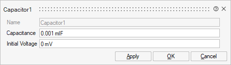 | Capacitor | C is the value of the capacitance (in F) | Initial voltage U(t=0) |