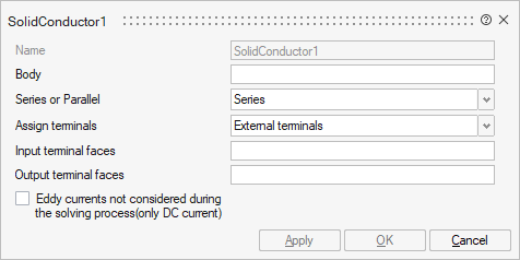 The conductor components are used to define the coupling between the circuit and FE domain. Apart from the usual line edit inputs, users need to select bodies from the FE domain to establish the coupling with the finite element analysis.