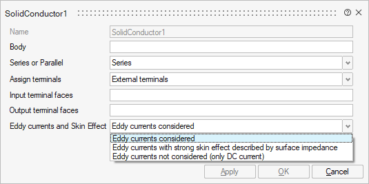 - Body: selection of body/bodies that represent the conductor in the FE domain