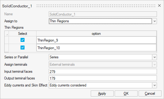 Once the Thin Region(s) created, it is possible to connect it to the circuit through the Conductor component: