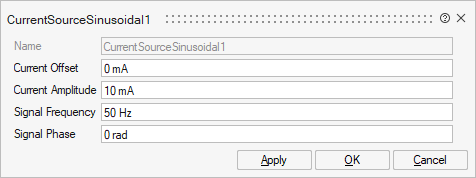 | Voltage / Current sources sinusoidal | 2D and 3D | Sinusoidal source components defined by value inputs. Orientation defines flow of current. |