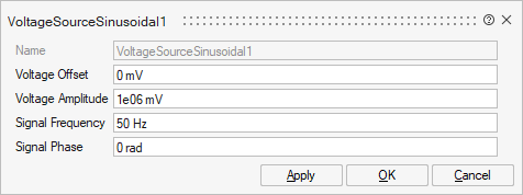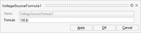 The voltage source formula component is used to define the voltage and input. Users are completely free to describe the waveform here. Line edit inputs can be values, parameters or parametric formulas that will be dependent on other parameters.