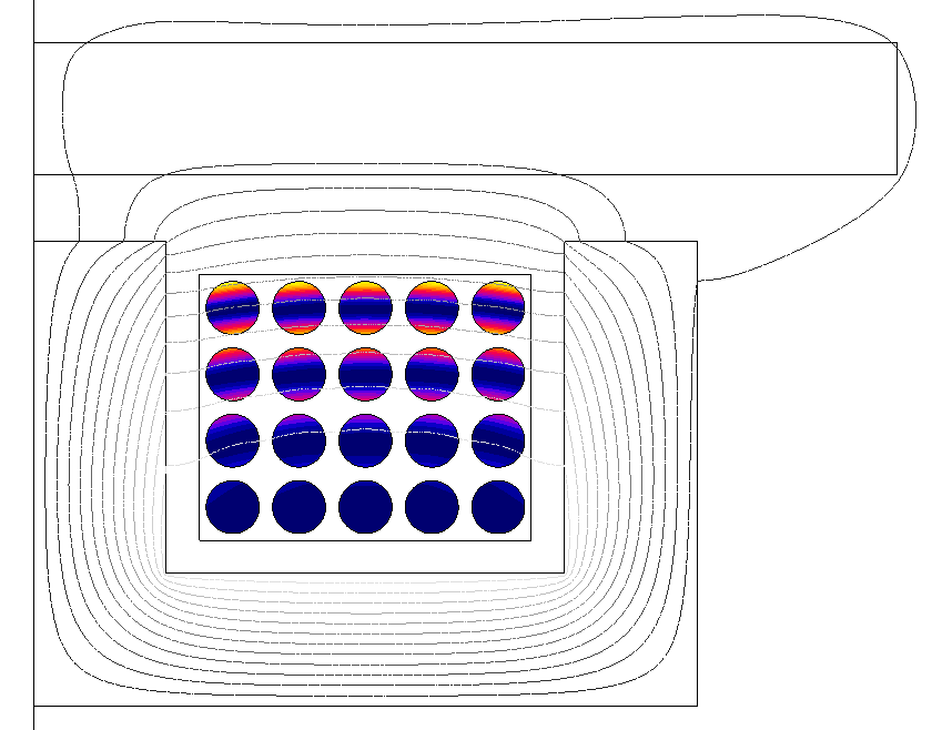 From a finite element method point of view, the face or volume bodies assigned to a meshed coil belongs to the computational domain and is discretized by finite elements. In consequence, it is possible to evaluate and display local quantities such as the current density, the magnetic induction, and the power loss density inside these bodies.