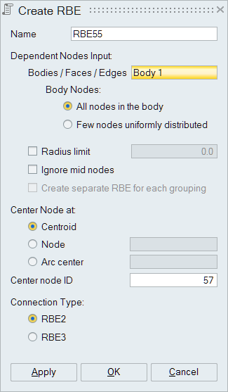 - While creating RBE using body as input, All the nodes in the body can be used for RBE creation or the Few nodes uniformly distributed option can be used to create RBE using few nodes.