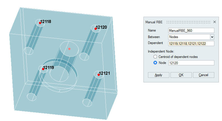 - When RBE is created between faces / edges, SimLab will identify node pairs and create node to node RBE.
