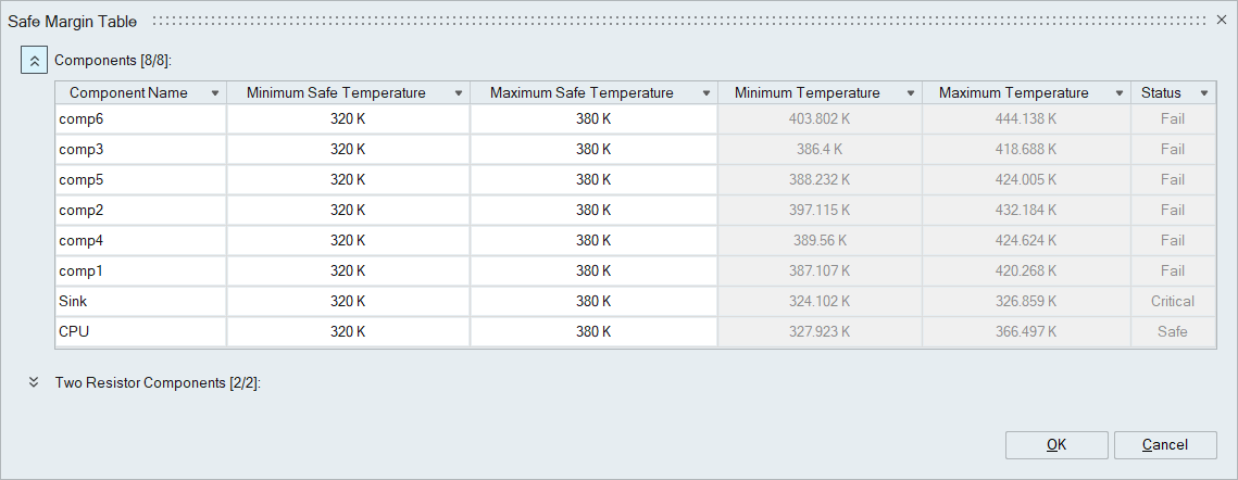 Safe Temperature Range allows the user to include sustainable temperature limits for the components involved in the analysis.