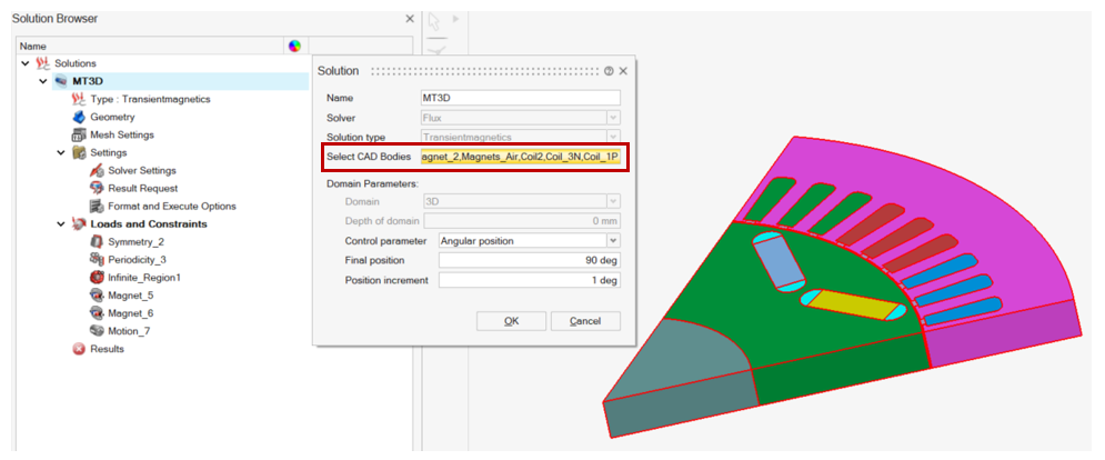- Define the physics by assigning the CAD bodies to the materials, Loads and Constraints and the circuit components