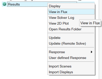 To access to Flux Postprocessing, in the Model Browser in the Assembly Tab, right click in Results and choose View in Flux.