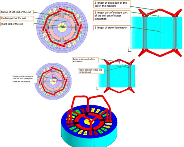 This tool is mainly used for modeling distributed windings with the non-meshed coil technique, as shown in the image below: