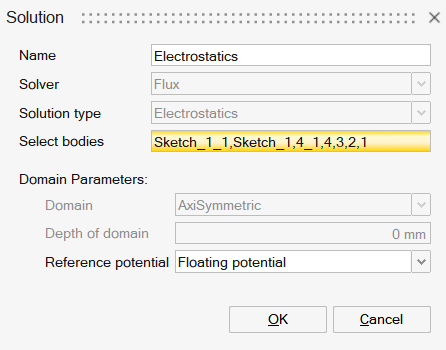 the creation of the solution Electrostatic 2D, please refer to Electrostatic solution.