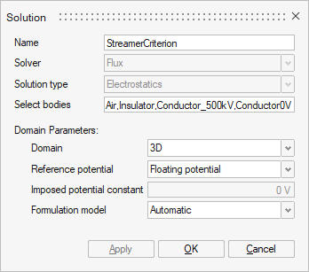 Note: The Electrostatic AC 3D solution is created before, to