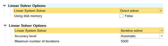 This section targets advanced users and wants to help understand what solver parameters do. Here are the solver options for Direct and Iterative solvers: