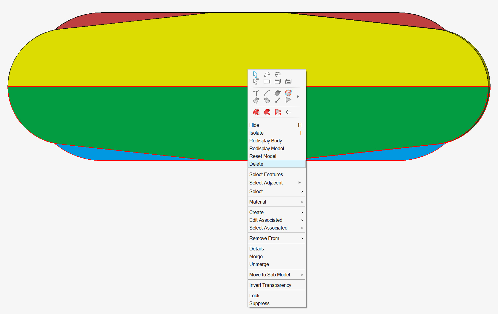 - Break bodies to cut the body into 2 bodies.Note: For symmetry or periodicity, once the bodies have been cut, you will have to remove the bodies that are useless by right-clicking on these bodies in the graphic window and selecting the Delete contextual menu.