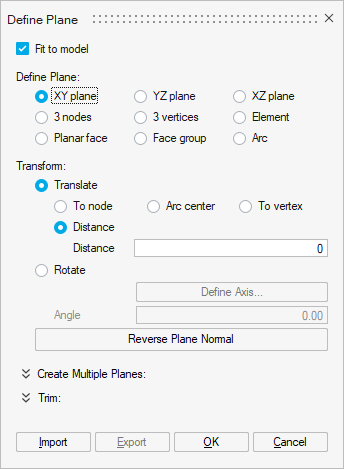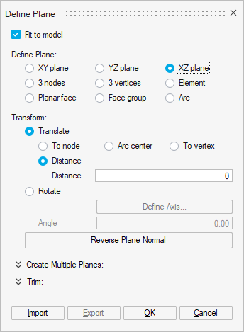 - The Define Plane window opens.