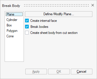 Break bodies via a Plane is selected by default.