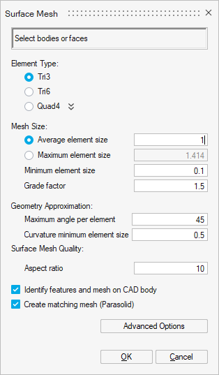 body.Note: This option only applies to surface meshed bodies.