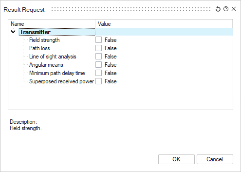 All simulation results which can be computed with the selected wave propagation model are listed here. You can select available result types by selecting the related check box.