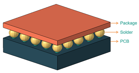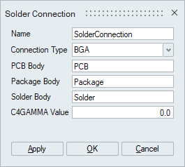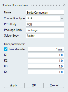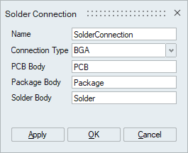 Solder connection tool used to create connection between solder, package and PCB bodies which is needed to compute the solder life.
