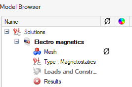 Note: The Magneto static 3D solution is created before, to have more details about the creation of the solution Magneto Static 3D, please refer to 3D Magnetostatic Solution.