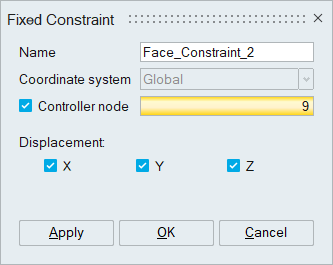 This tool is used to define fixed displacement and also the controller node for FSI analysis.