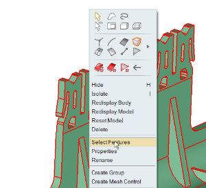 With Select Feature option, you can select desired feature from solid and define mesh control. This is fast and easy way to define mesh controls.