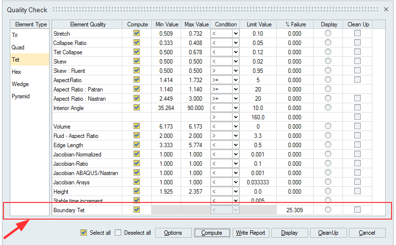 - Boundary tet refers to an element that has all the nodes on the surface of the model. In flow analysis, these elements are also termed as dead elements.