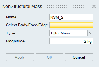 This tool is used to apply non structural mass over the selected bodies. Non structural mass is the mass of the body which don't contribute any stiffness.