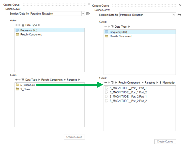 - For S-parameters, by importing in another System software the results exported from SimLab in one of the 2 available formats (options in Result Request to define before the solving):