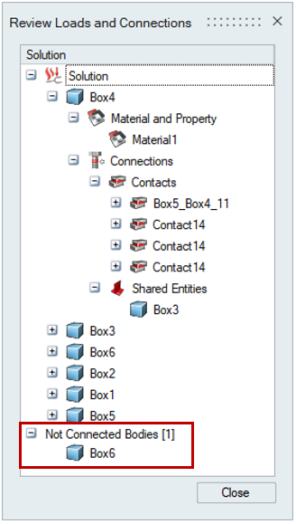 - This tool helps to find the unconnected bodies, by listing the unconnected bodies separately.