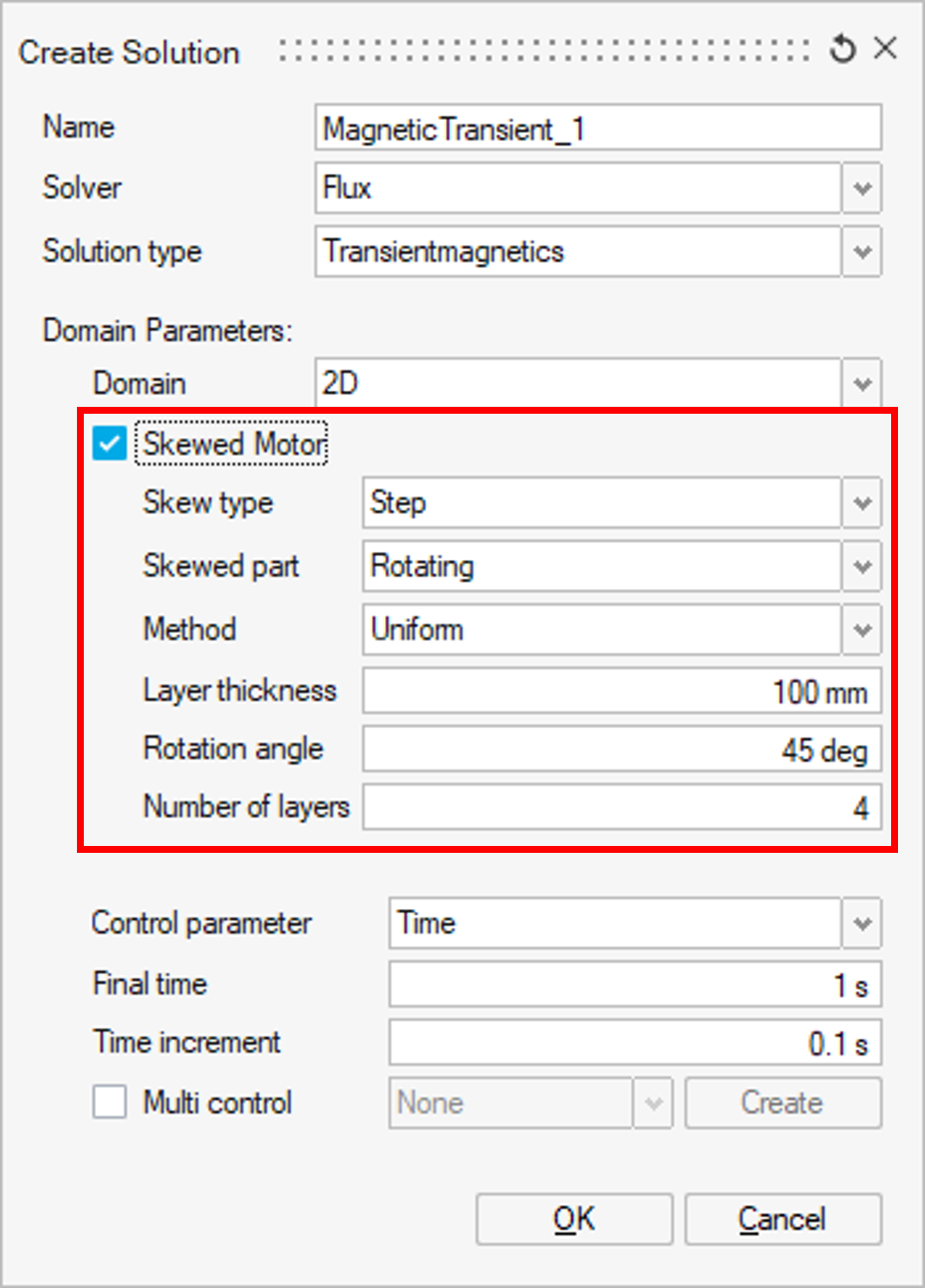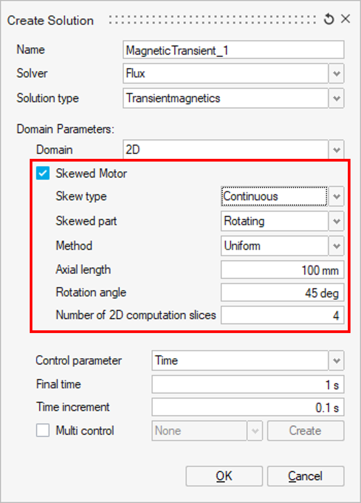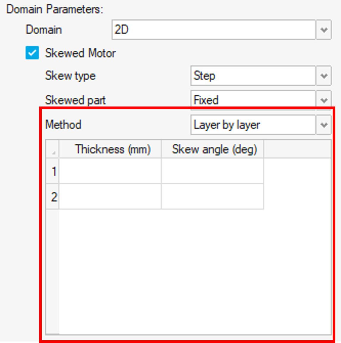 - The Skewed Motor definition is a possible option of the 2D Domain solution. Its like a 2D description during the pre-processing stages, allowing a straightforward description of the geometry and physics of the electric machine in two dimensions, based only on one of its cross-sections