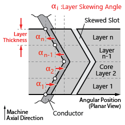 Skewing corresponds to spreading the current-carrying conductors housed in the machine slots along a certain angle through the machine’s axial length. Consequently, it may be regarded as a special form of winding distribution that may be applied to either squirrel cage bars in induction machines or to regular stranded windings in other types of machines.