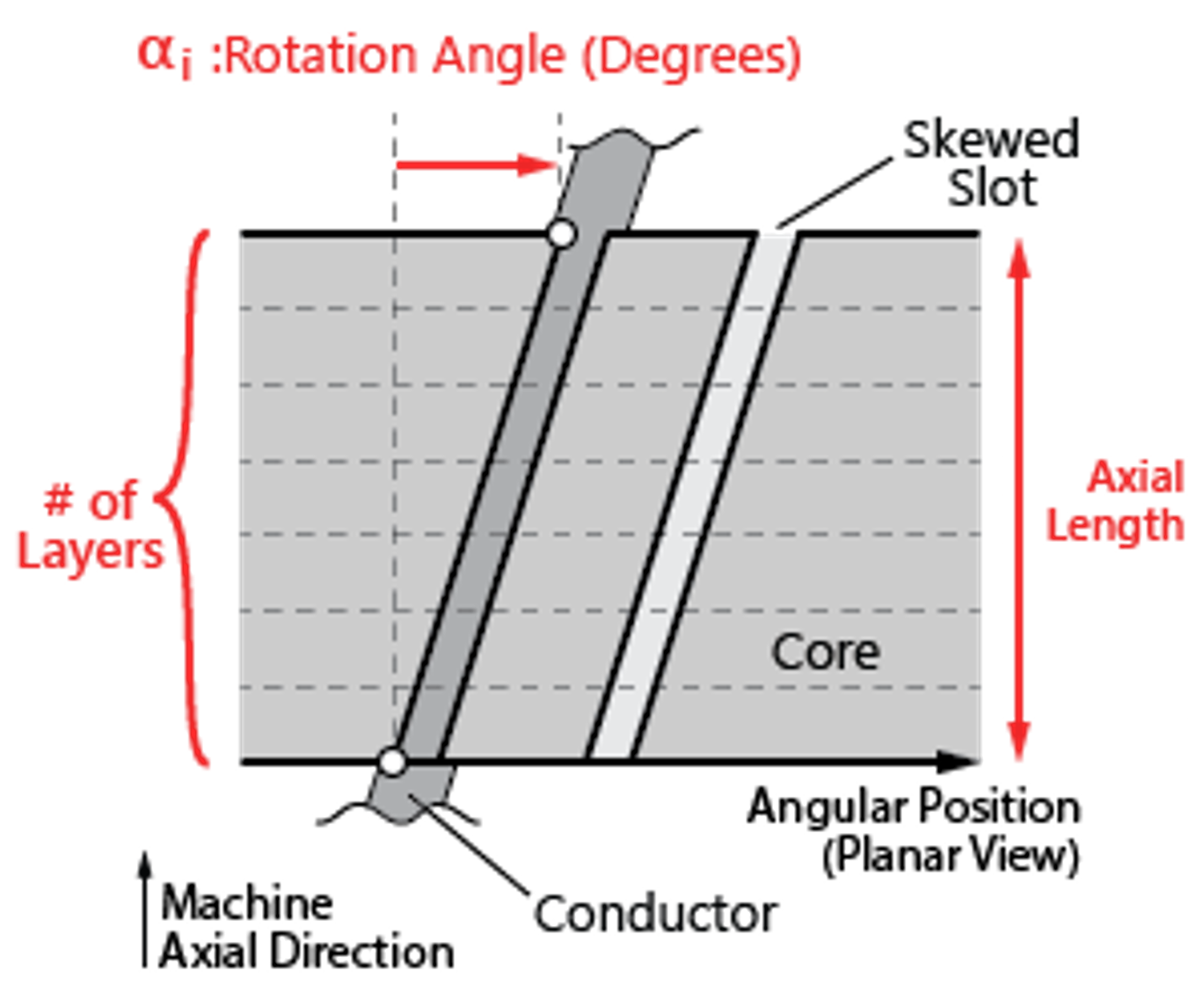 Skewing is a design technique that corresponds to continuously “twisting” or slanting the geometry of the slots of the magnetic circuit of a rotating electric machine away from its axial direction. Skewing is usually performed in the rotor, but the stator slots of a machine may also be skewed in certain designs. Figure 1 shows the example of an induction machine rotor with skewed slots.