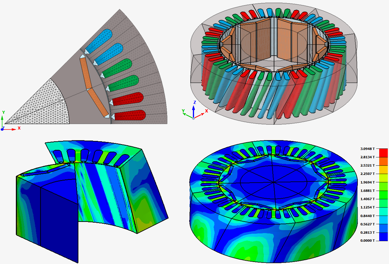 - After solving, and while in post-processing, allowing the exploitation of physical quantities in a three-dimensional representation of the skewed machine like a 3D SimLab database