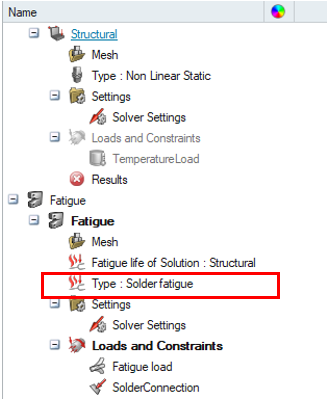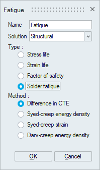 Solder fatigue analysis is to analyze and predict fatigue damage of the solder joint between a component and the base Printed Circuit Board (PCB).