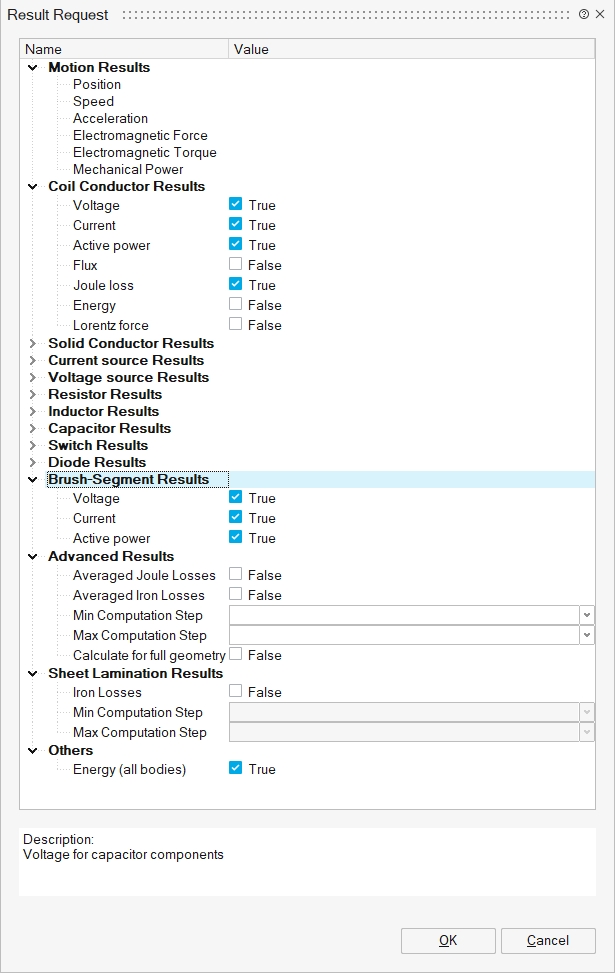 The Current, Voltage and Magnetic Flux for all components will be in RMS format and will be named Current_Module_RMS_<Component Name>, Voltage_Module_RMS_<Component Name> and Flux_Module_RMS_<Component Name> respectively.