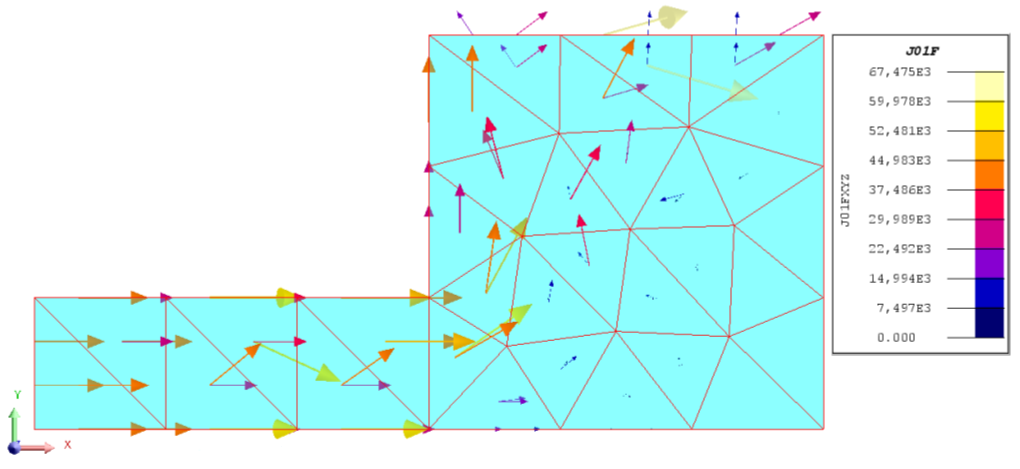 , with σ the electric conductivity. This formulation used nodal final elements to compute the electric scalar potential V. But this formulation does not strongly respect the conservation of the current.