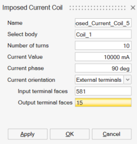 If there are already created Imposed Current Coils, it is possible to check again the defined orientation in comparison with the existing ones by clicking on any field which is not Input/Output faces field.