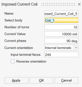 - Prerequisite: The bodies to define as Imposed Current Coils must be volume meshed.