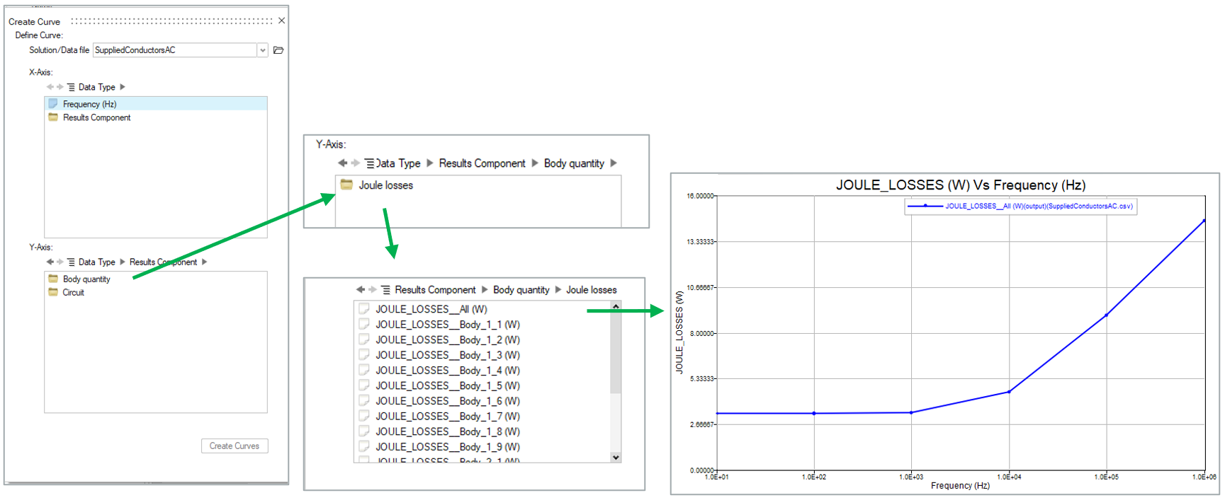 Joule lossBy default, Joule loss calculation is enabled (True). The calculated values can be seen in the 2D Plot. They are listed by Joule losses on each FEM body and also by the sum over the entire 3D structure.