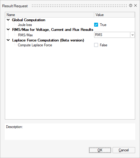 RMS/Max for Voltage, Current and Flux Results
